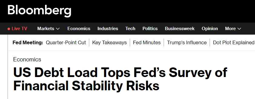 彭博社(Bloomberg)在報(bào)道中提到,美國政府的債務(wù)負(fù)擔(dān)現(xiàn)在被認(rèn)為是金融穩(wěn)定面臨的最大風(fēng)險(xiǎn),在美聯(lián)儲的一項(xiàng)調(diào)查中,其重要性超過了持續(xù)的通貨膨脹。逾半數(shù)受訪者(54%)認(rèn)為美國財(cái)政債務(wù)的可持續(xù)性是一個(gè)突出風(fēng)險(xiǎn),而半年前這一比例僅為40%。美聯(lián)儲的半年度金融穩(wěn)定報(bào)告寫道:“美國財(cái)政債務(wù)可持續(xù)性方面的擔(dān)憂位居榜首,其次是中東緊張局勢升級和政策的不確定性?!?/p>