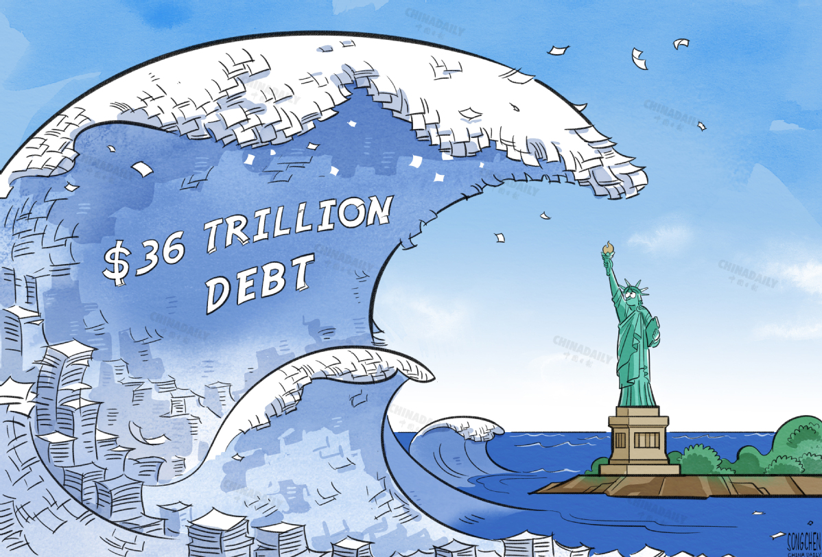 美國國債總額已突破36萬億美元,達(dá)到創(chuàng)紀(jì)錄的新高。(作者:中國日報(bào) 宋晨)