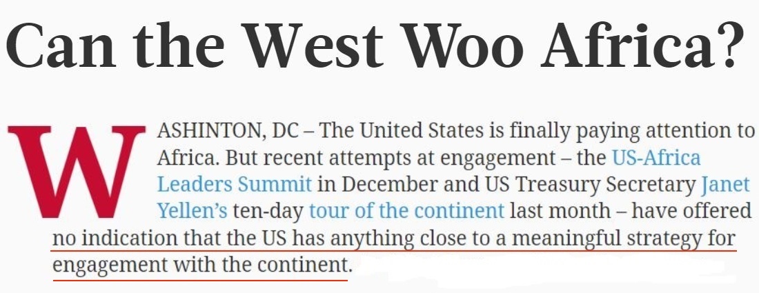 △世界報業(yè)辛迪加網(wǎng)站:雖然非洲以其快速增長的人口、豐富的資源以及龐大的聯(lián)合國會員國席位數(shù)目重新受到了美國的關注,但沒有任何跡象表明美國已制定出與非洲加強接觸的有意義的戰(zhàn)略。