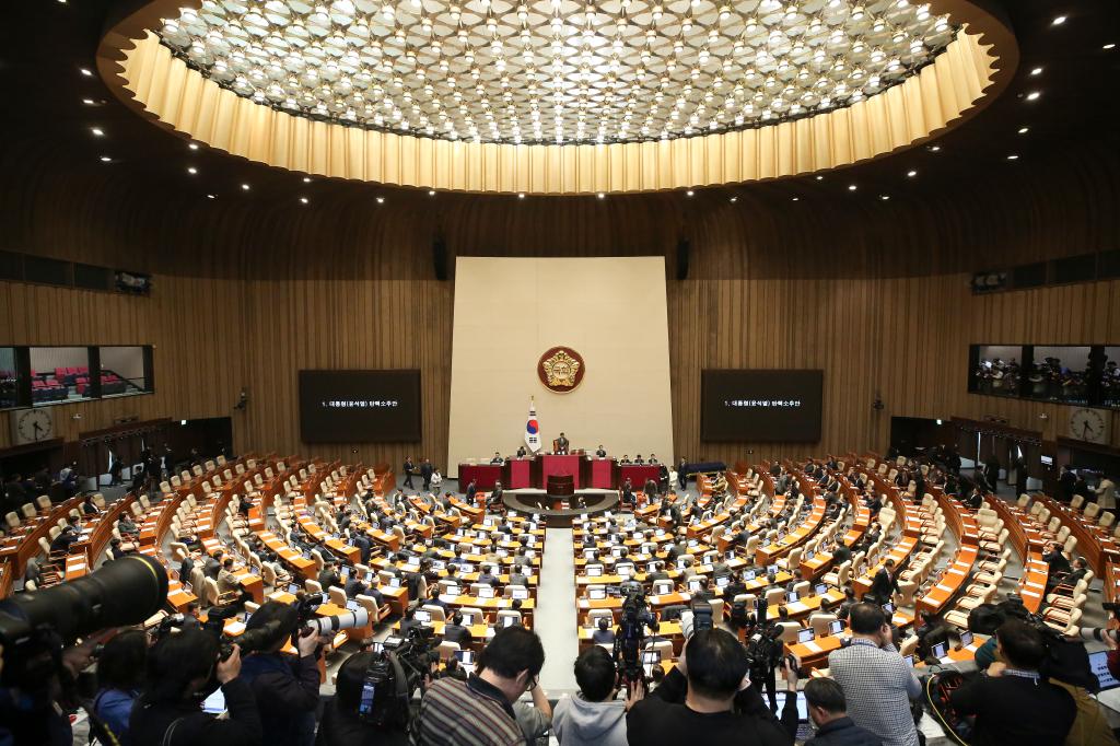 12月14日,在韓國首都首爾,韓國國會(huì)議員參加彈劾動(dòng)議案投票。新華社記者 姚琪琳 攝