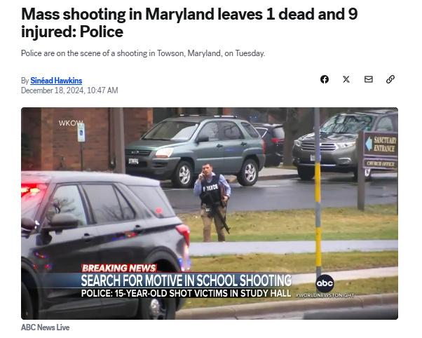 中新網(wǎng)12月18日電 據(jù)美國廣播公司(ABC)報道,當?shù)貢r間17日,警方稱,美國馬里蘭州巴爾的摩發(fā)生大規(guī)模槍擊事件,造成1人死亡,9人受傷。
