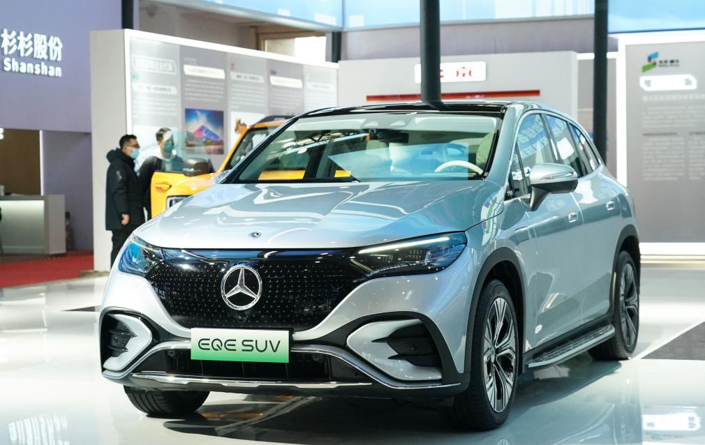 2023年11月30日在北京舉辦的首屆中國國際供應(yīng)鏈促進(jìn)博覽會(huì)智能汽車鏈展區(qū)拍攝的奔馳EQE SUV。新華社記者任超攝