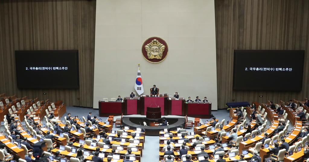 在韓國總統(tǒng)尹錫悅遭國會(huì)彈劾、國務(wù)總理韓德洙代行總統(tǒng)職權(quán)僅13天后,韓國國會(huì)27日下午以192票贊成通過針對(duì)韓德洙的彈劾動(dòng)議案。