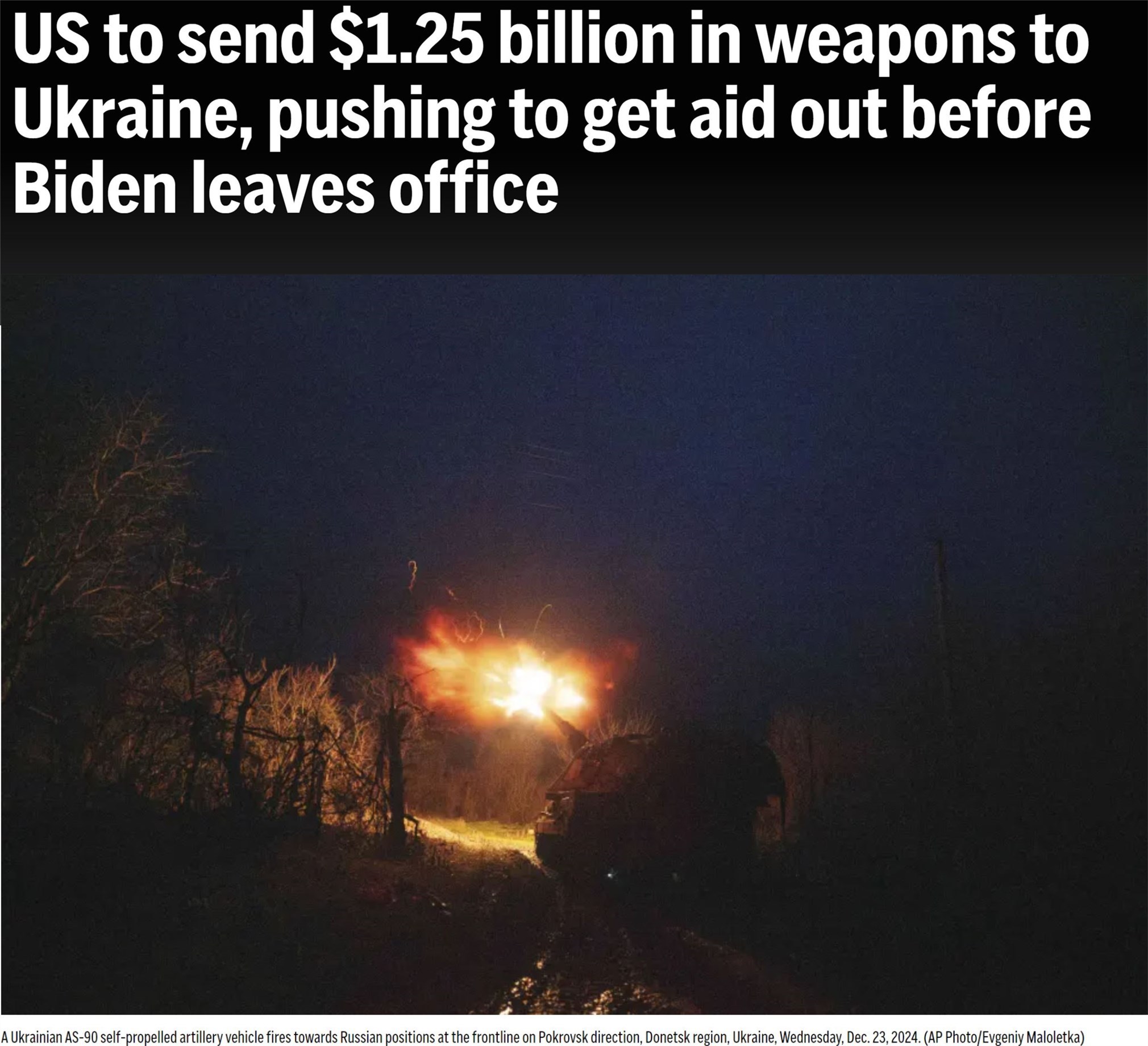 美聯(lián)社28日援引多名匿名官員的話報道稱,拜登政府計劃在明年1月卸任前再向烏克蘭提供12.5億美元的新一輪軍事援助,其中包括用于“國家先進地空導(dǎo)彈系統(tǒng)”和“鷹”式防空導(dǎo)彈系統(tǒng)的彈藥、“毒刺”防空導(dǎo)彈以及155毫米和105毫米口徑火炮炮彈等。