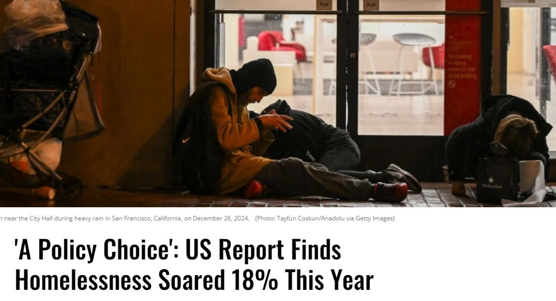 美國住房和城市發(fā)展部(HUD)本月27日發(fā)布報告稱,美國聯(lián)邦無家可歸者追蹤系統(tǒng)記錄到的無家可歸者數(shù)量已超過77萬,與去年同期相比驟增了18.1%,也是自2007年開始此項(xiàng)統(tǒng)計以來的最大增幅。對此,美國《共同夢想》網(wǎng)站(Common Dreams)報道指出,這完全是“政策選擇”,后果可以預(yù)見。