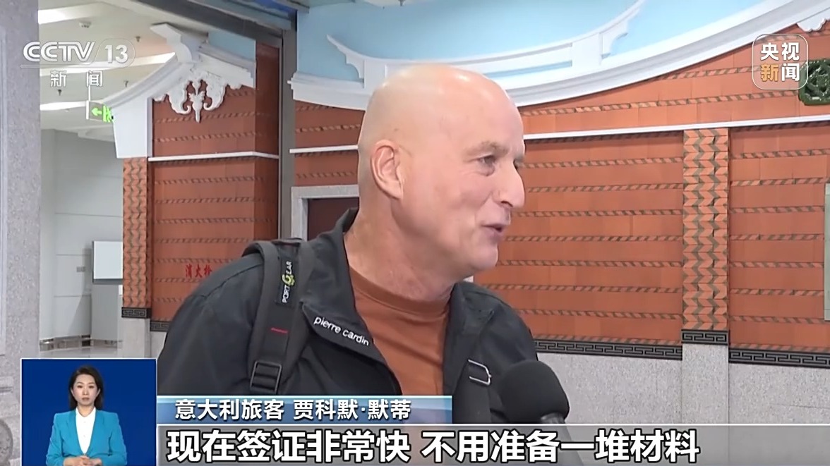 意大利旅客 賈科默·默蒂:現(xiàn)在簽證非???,不用準(zhǔn)備一堆材料?,F(xiàn)在非常方便,非常好。因?yàn)檫@樣節(jié)省了很多手續(xù),之前需要很多的文件,非常復(fù)雜?,F(xiàn)在很快,因?yàn)槭敲夂灐?/p>