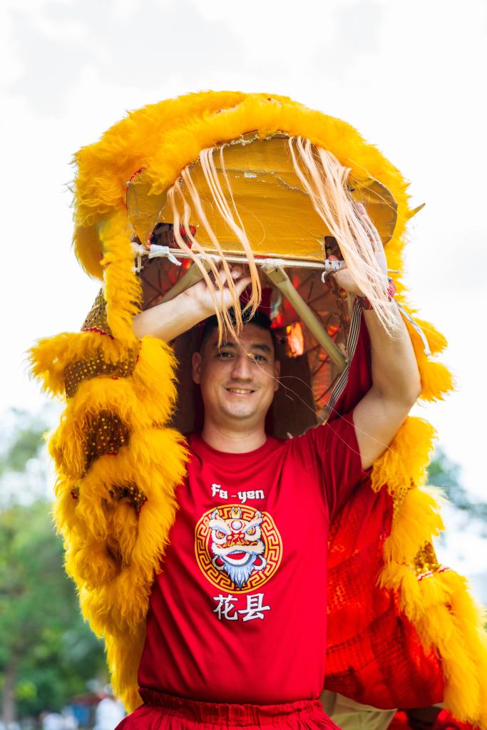 2021年,中國農(nóng)歷新年成為巴拿馬全國性節(jié)日。37歲的巴拿馬人伊萬·胡斯蒂尼亞尼,每逢春節(jié)都會和家人一起出門觀看慶?;顒?,尤其是舞獅表演。出于對舞獅的喜愛,兩年前,他與兩個孩子加入擁有50多年歷史的花縣醒獅團(tuán)。