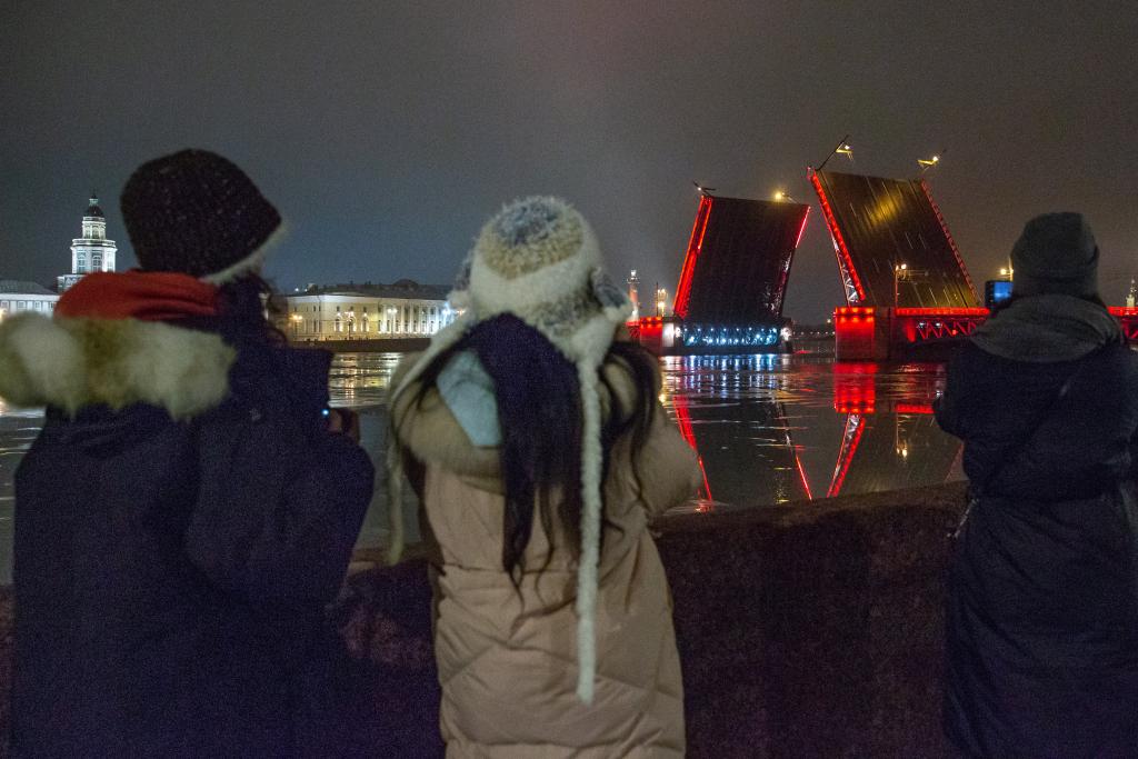 按照當?shù)貍鹘y(tǒng),涅瓦河上的多座橋梁只在每年4月至11月通航季定時開合,以便大型船只通航?!斑@是圣彼得堡首次為外國節(jié)日開橋,特別獻給我們的中國朋友?!笔ケ说帽な袑ν怅P(guān)系委員會主席格里戈里耶夫說。