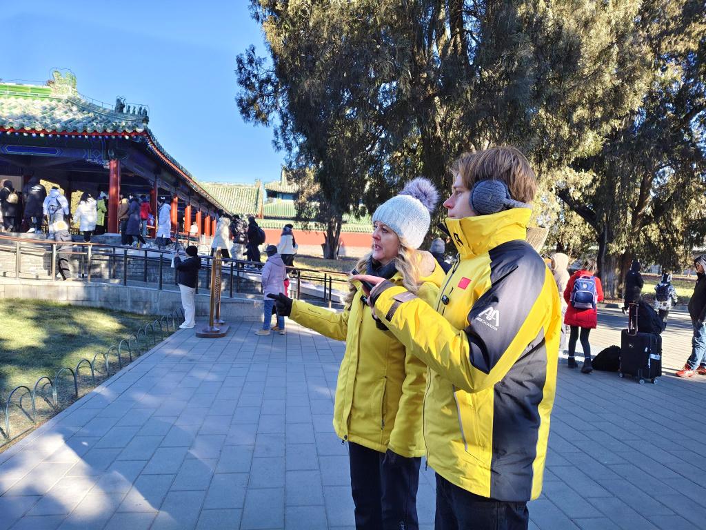 祈年殿、皇穹宇、圜丘……路過(guò)一個(gè)個(gè)景點(diǎn),記者為他們介紹起建筑背后的歷史和“天人合一”理念,母子二人聽(tīng)得津津有味。當(dāng)天北京戶(hù)外溫度低至零下8攝氏度,手凍得生疼,但絲毫未影響埃米爾和媽媽拍照記錄的熱情。