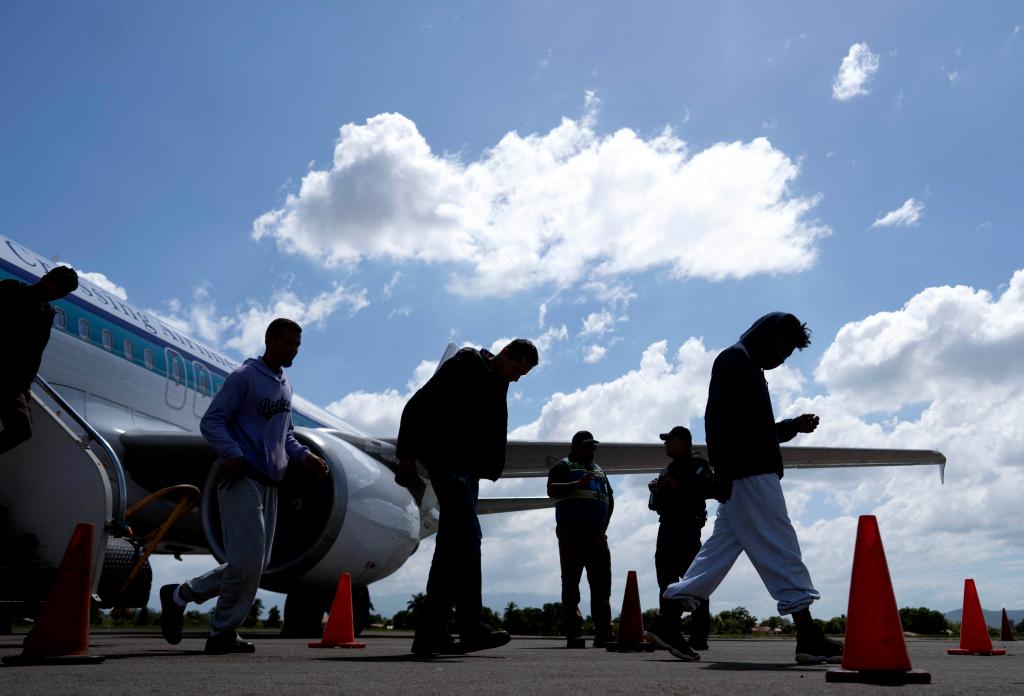 快中午時(shí),又一架載著被美國(guó)遣返移民的航班降落。