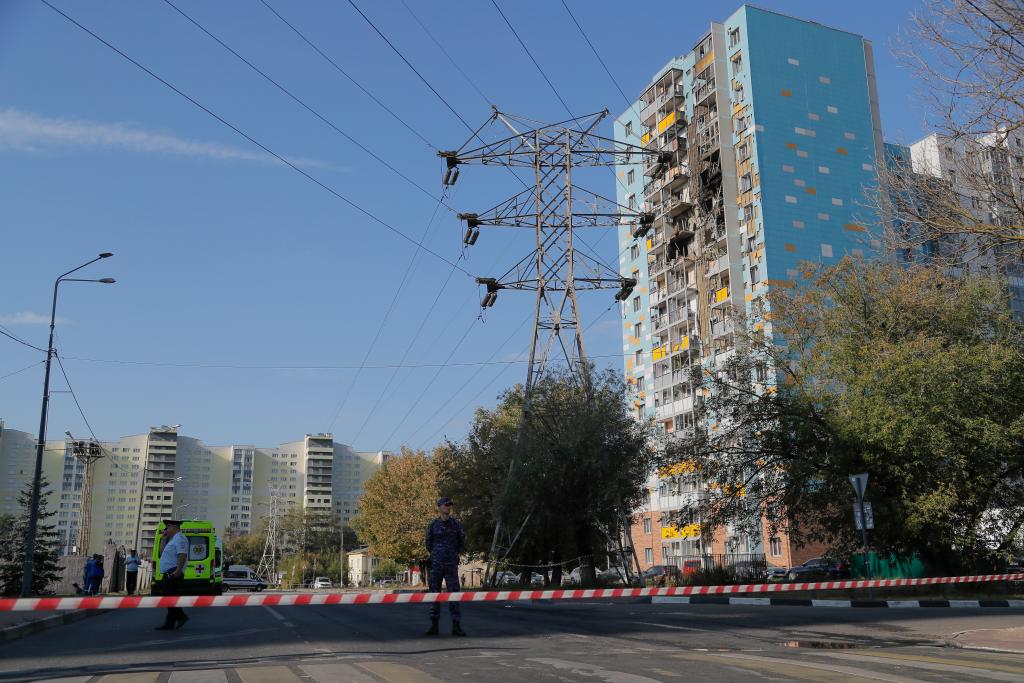 這是2024年9月10日在俄羅斯莫斯科州拉緬斯科耶拍攝的在無人機(jī)襲擊中受損的建筑。新華社發(fā)(亞歷山大攝)