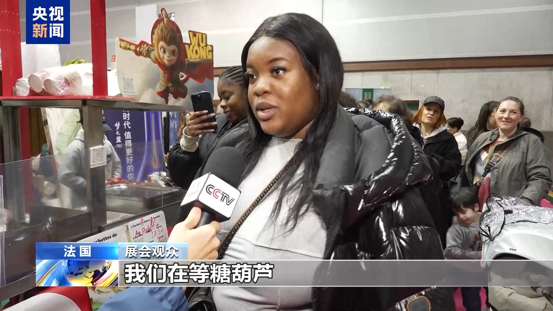展會(huì)觀眾:我們在等糖葫蘆,我們是在社交媒體TikTok上看到的,想嘗一嘗,所以我們就來試試。我們從來沒吃過糖葫蘆,很多味道融合在一起,中國是一個(gè)很美麗的國家,人們很友善,很有禮貌。