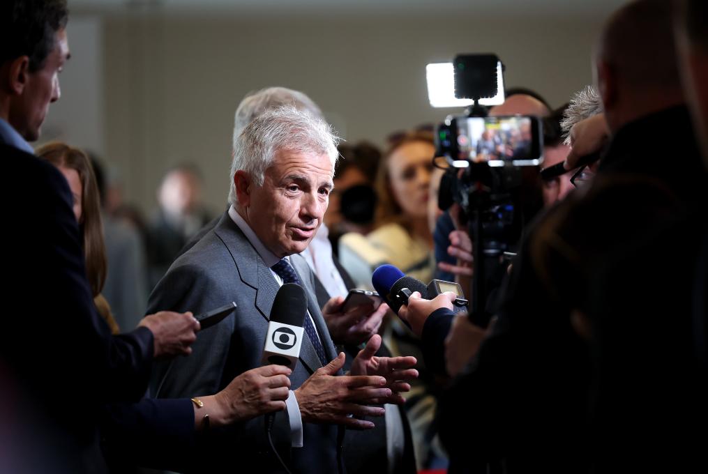 19日上午全會議程結束后,七位候選人先后來到會場外的混合采訪區(qū),面對來自全球近百名記者的“長槍短炮”。