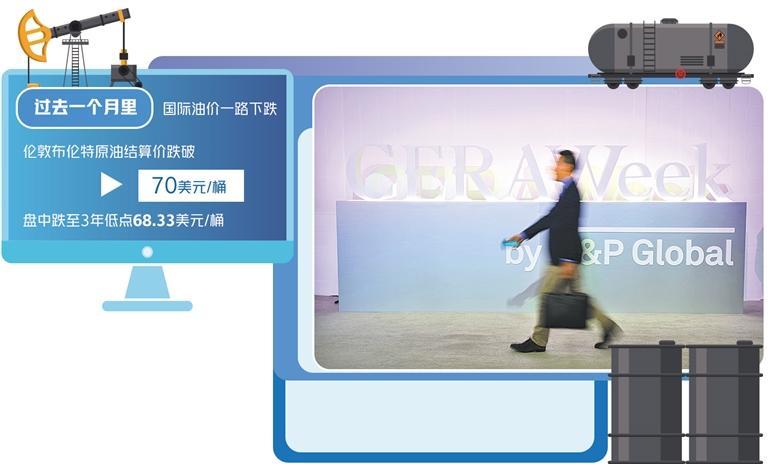 先看最近國際油價的走勢。一方面是油價隨著美國的關(guān)稅戰(zhàn)威脅而劇烈波動,并且跌到半年來的最低點。統(tǒng)計數(shù)據(jù)表明,在過去一個月里,國際油價一路下跌,倫敦布倫特原油期貨結(jié)算價跌破70美元/桶,盤中更是跌至3年低點68.33美元/桶。自特朗普就職以來,國際油價每桶平均價格已經(jīng)下跌了10美元之多。