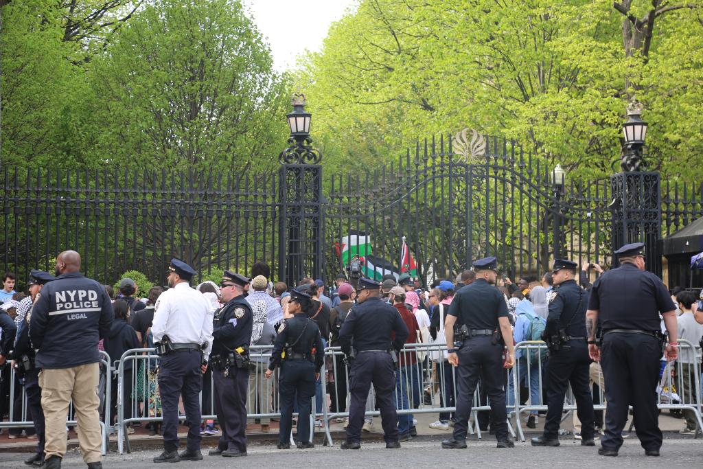 2024年4月30日,警察在美國(guó)紐約哥倫比亞大學(xué)外警戒。新華社記者 劉亞南 攝
