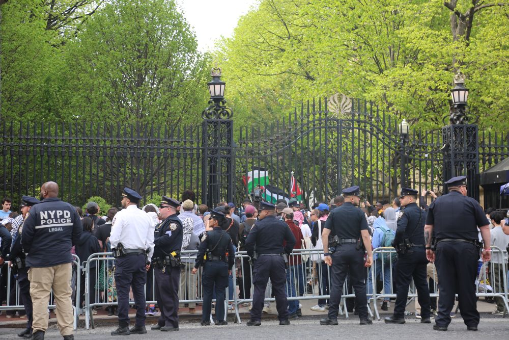 2024年4月30日,警察在美國紐約哥倫比亞大學(xué)外警戒。新華社記者劉亞南 攝