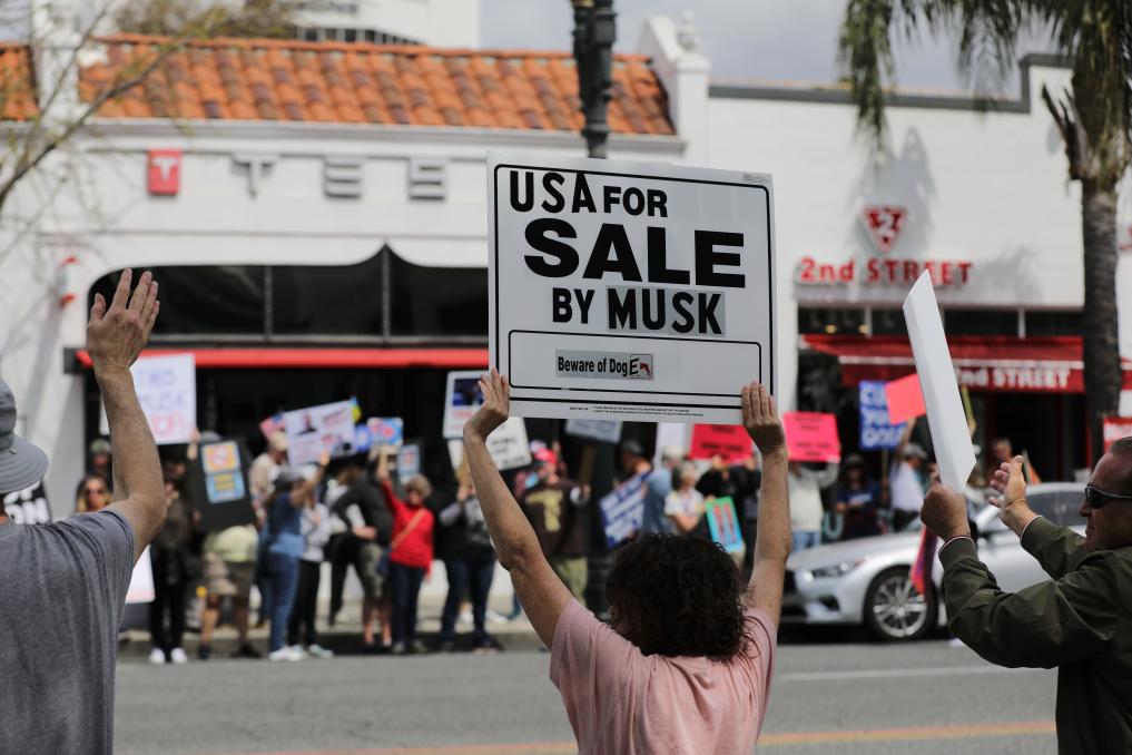 美國(guó)多地持續(xù)爆發(fā)反對(duì)馬斯克的抗議活動(dòng)。據(jù)美聯(lián)社報(bào)道,3月29日,抗議者開(kāi)始涌向位于新澤西、馬薩諸塞、康涅狄格、紐約、馬里蘭、明尼蘇達(dá)和得克薩斯等州的特斯拉門(mén)店,舉著“如果你討厭?cǎi)R斯克就按喇叭”等標(biāo)語(yǔ)。