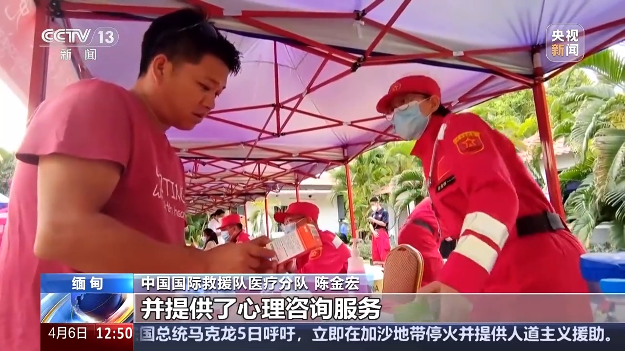 中國國際救援隊醫(yī)療分隊 陳金宏:今天我們來到這里,開展內(nèi)外婦兒診療,進行防疫消殺的培訓(xùn),并提供了心理咨詢服務(wù),下一步結(jié)合曼德勒市傷情災(zāi)情,我們會持續(xù)為當(dāng)?shù)貫?zāi)民做好醫(yī)療服務(wù)。