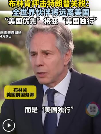 美國前國務卿布林肯日前接受媒體采訪時表示,美國現(xiàn)任政府對全球加征關(guān)稅,將動搖美國家信譽,導致“美國優(yōu)先”變成“美國獨行”。