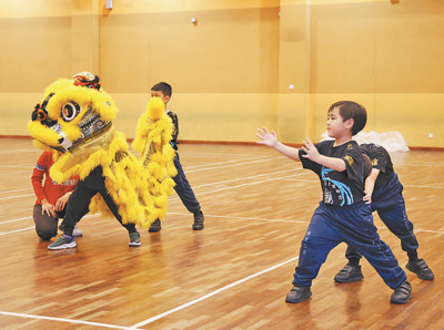 馬來西亞雪蘭莪州培才二校的學生在練習舞獅?! ”緢笥浾?楊 一攝