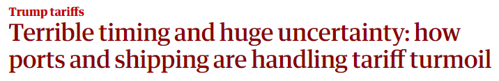 英國《衛(wèi)報》網(wǎng)站13日刊文稱,受到美國政府近期關(guān)稅政策的影響,運價持續(xù)波動、港口擁堵恐成為全球貨物運輸在短期內(nèi)面臨的常態(tài)。