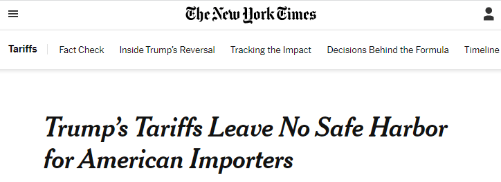 美國《紐約時報》網(wǎng)站的文章也認(rèn)為,美國政府的新關(guān)稅政策令美國進口商失去了所有“安全港”。對于那些轉(zhuǎn)移生產(chǎn)的企業(yè)來說,新關(guān)稅政策破壞了他們的戰(zhàn)略布局,也埋下了隱患的種子。
