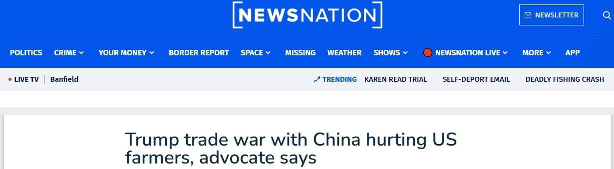 △美國媒體援引美國農(nóng)民工會主席的評論:特朗普發(fā)起對中國的貿(mào)易戰(zhàn)傷害了美國農(nóng)民