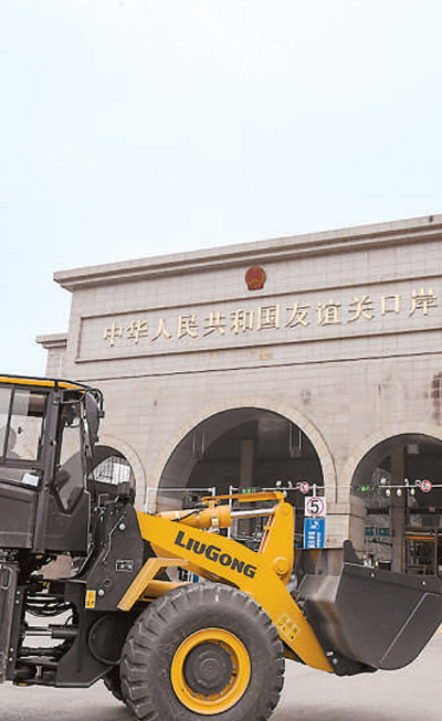 在廣西憑祥友誼關(guān)口岸,一批裝載機(jī)駛過口岸出口越南。新華社記者 曹祎銘攝