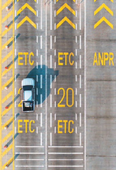 汽車駛過柬埔寨金港高速金邊收費(fèi)站(無人機(jī)照片)。張金加攝(新華社發(fā))