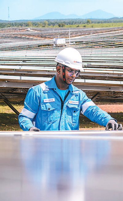 馬來西亞吉打州南部,由中企承建并運(yùn)營的瓜拉基蒂光伏電站上,工人在巡檢設(shè)備。張紋綜攝(新華社發(fā))