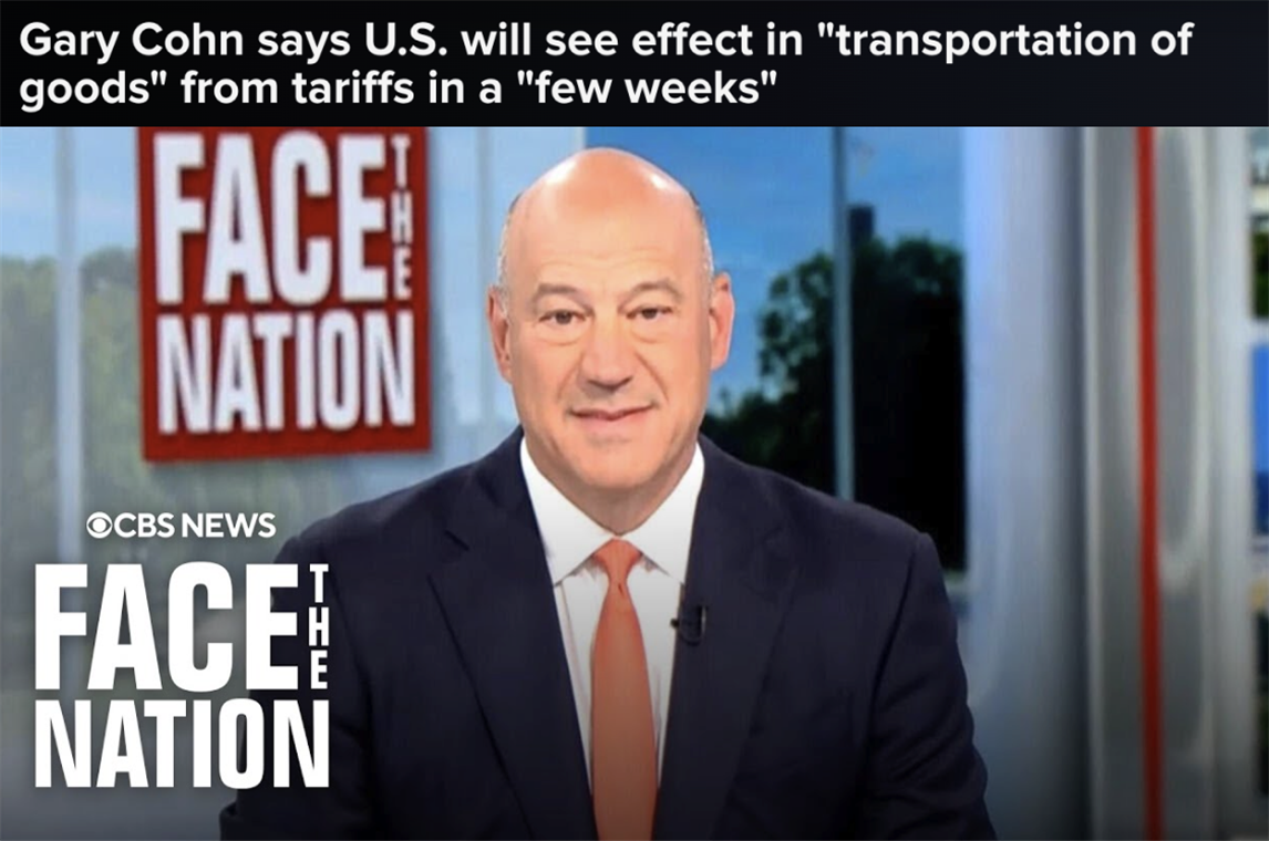 在特朗普第一個(gè)總統(tǒng)任期出任過(guò)總統(tǒng)首席經(jīng)濟(jì)顧問(wèn)的加里·科恩日前在接受美國(guó)哥倫比亞廣播公司采訪時(shí)表示,鑒于進(jìn)口商品的分銷周期約為8周,這意味著美國(guó)政府4月初宣布的所謂“對(duì)等關(guān)稅”的實(shí)際影響將在5月底開始顯現(xiàn)。