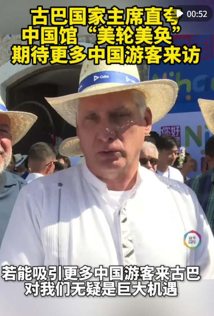 古巴國家主席迪亞斯-卡內(nèi)爾2日在哈瓦那參觀第43屆古巴國際旅游博覽會中國主題展館后,高度評價中國作為主賓國的重要貢獻(xiàn),稱贊中國館“美輪美奐,生動展現(xiàn)了中國悠久的歷史和燦爛的文化”,他說,古巴欽佩中國的文化與發(fā)展成就,期待更多中國游客來訪。