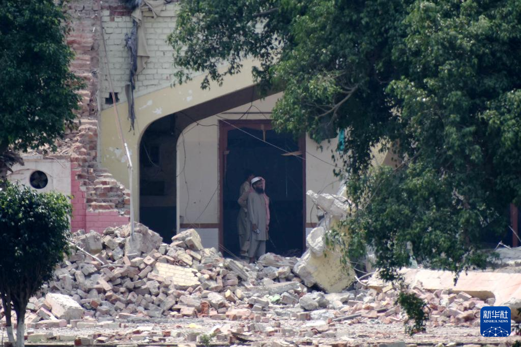 5月7日,人們?cè)诎突固箹|部旁遮普省謝赫布拉地區(qū)穆里德蓋鎮(zhèn)查看遭印度導(dǎo)彈破壞的建筑。新華社發(fā)(薩賈德攝)