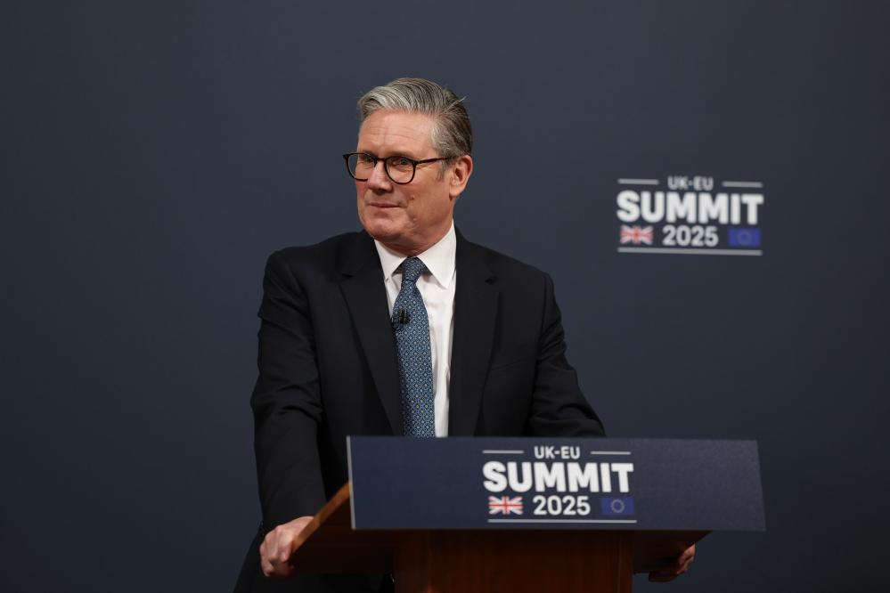 5月19日,英國首相斯塔默在倫敦與歐盟領導人舉行會議后參加記者會。新華社發(fā)(英國首相府供圖)