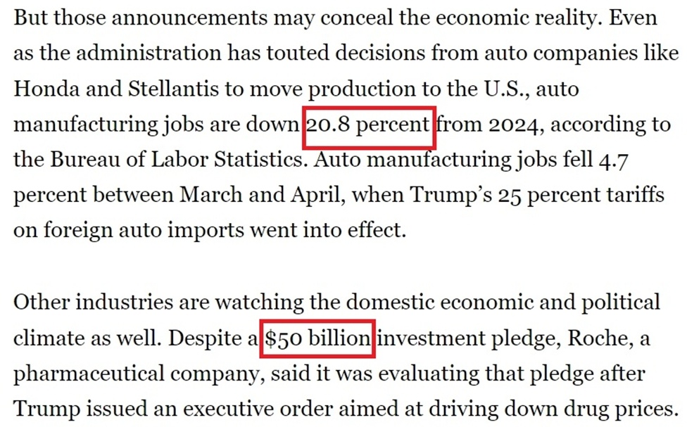《政治報》的報道提到,在關(guān)稅政策深陷爭議的情況下,美國政府當前非??释麑ν庹故尽懊绹?jīng)濟增長”的跡象,以至于一些公司只要口頭表示“考慮增加在美國的產(chǎn)能”就能得到白宮的贊賞。但現(xiàn)實卻是,許多白宮吹噓的企業(yè)投資計劃要么已經(jīng)籌備多年,要么被人為夸大,不少還可能在未來生變。