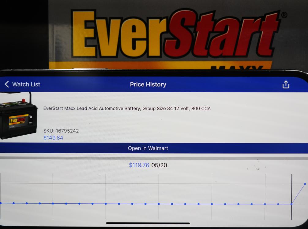 5月21日,在美國舊金山灣區(qū)圣利安卓San Leandro的一家沃爾瑪超市,價格跟蹤軟件(Walmart Tracker)顯示商品(EverStart汽車蓄電池)售價變化。新華社記者吳曉凌攝