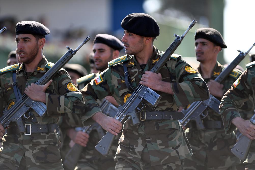 2025年4月18日,在伊朗首都德黑蘭,士兵們在閱兵式上列隊行進(jìn)。伊朗18日舉行建軍節(jié)閱兵式。新華社記者 沙達(dá)提 攝