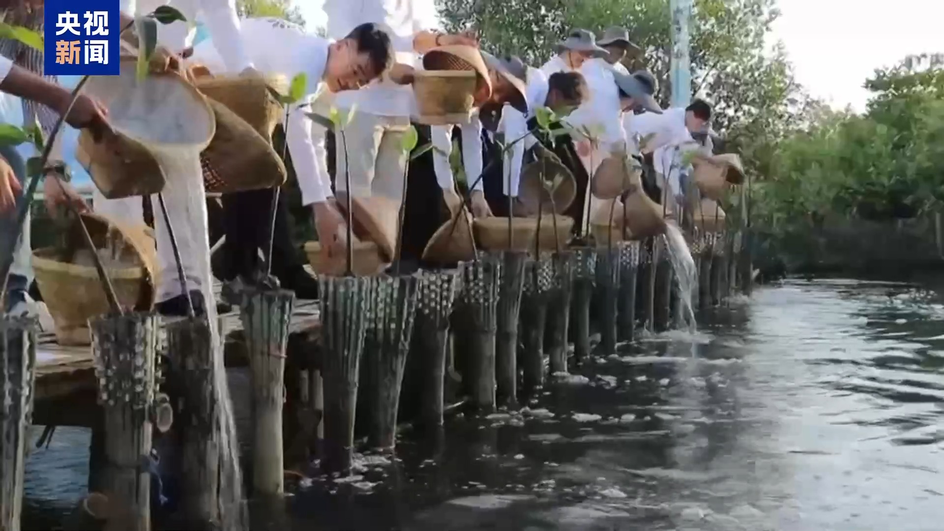 就在記者探訪的當(dāng)天,又一批紅樹苗被種入沿海灘涂。這樣的生態(tài)投入也帶來了民生收益,周邊居民有了新的就業(yè)機(jī)會(huì),漁業(yè)資源也逐漸恢復(fù),越來越多珍稀野生動(dòng)物在此安家。