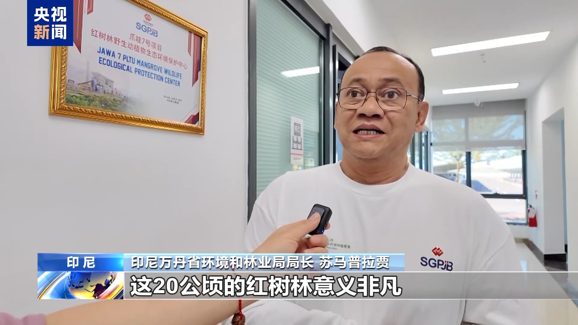 總臺(tái)記者 李琳:我現(xiàn)在所在的位置是印尼(單機(jī)容量)最大的火力發(fā)電廠。我現(xiàn)在所在的這個(gè)平臺(tái)有80米高。從我身后大家可以看到一大片紅樹林和電廠是和諧共生。那么在最開始,這片紅樹林只有5公頃的面積,而隨著企業(yè)不斷地種植,現(xiàn)在已經(jīng)達(dá)到了20公頃。