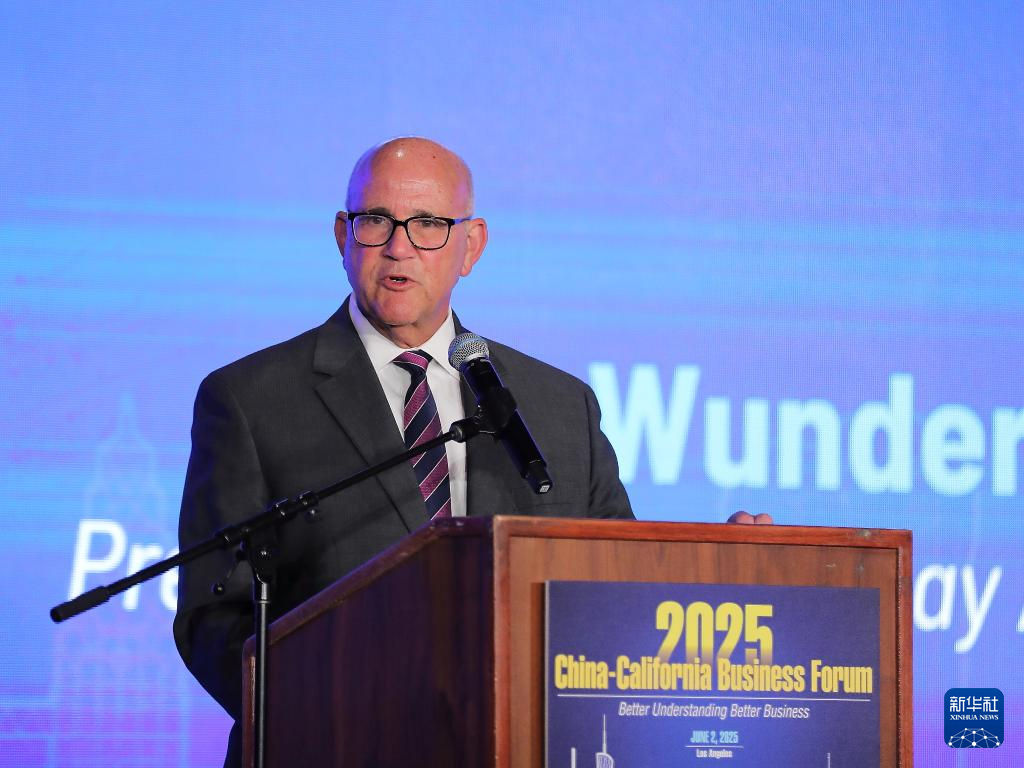 6月2日,在美國洛杉磯,舊金山灣區(qū)委員會(huì)主席吉姆·旺德曼在2025年中國—加州經(jīng)貿(mào)論壇上發(fā)表講話。新華社發(fā)(邱晨攝)