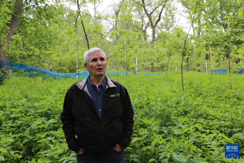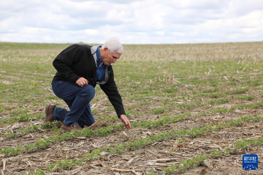 5月22日,在美國(guó)艾奧瓦州,比爾·佩利特查看種植的農(nóng)作物。新華社記者 劉亞南 攝