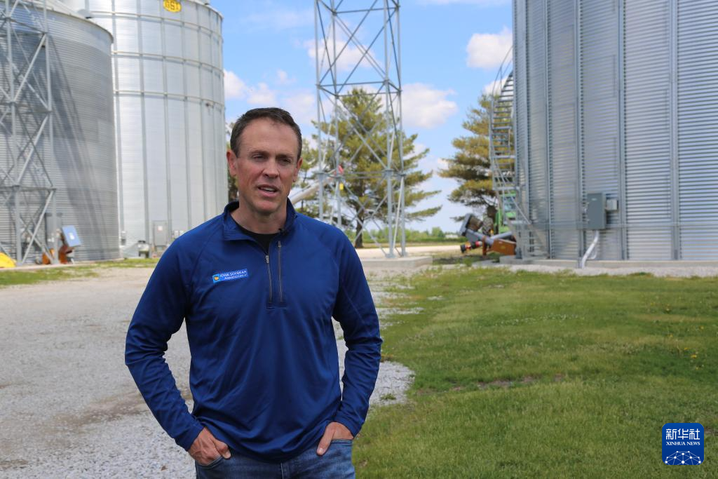 5月23日,在美國(guó)艾奧瓦州,艾奧瓦州大豆協(xié)會(huì)市場(chǎng)部高級(jí)主任格蘭特·金伯利接受記者采訪。新華社記者 劉亞南 攝