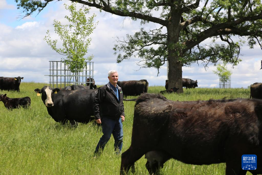 5月22日,在美國(guó)艾奧瓦州,比爾·佩利特查看養(yǎng)殖的牛群。新華社記者 劉亞南 攝