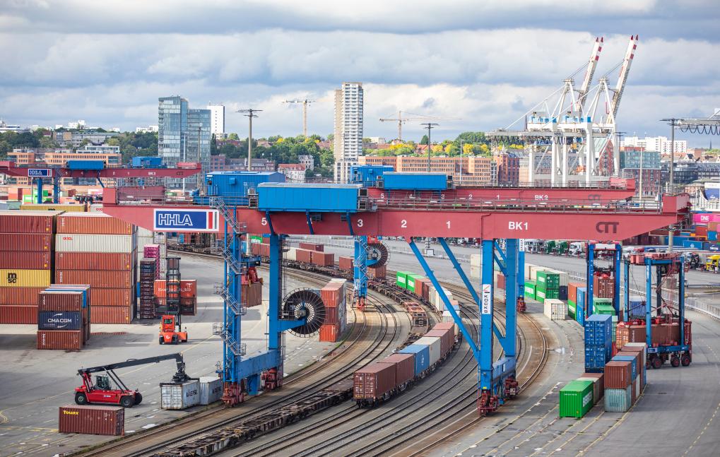 這是5月28日拍攝的德國(guó)漢堡港口與物流股份公司旗下漢堡港CTT集裝箱碼頭景象。新華社記者張帆攝