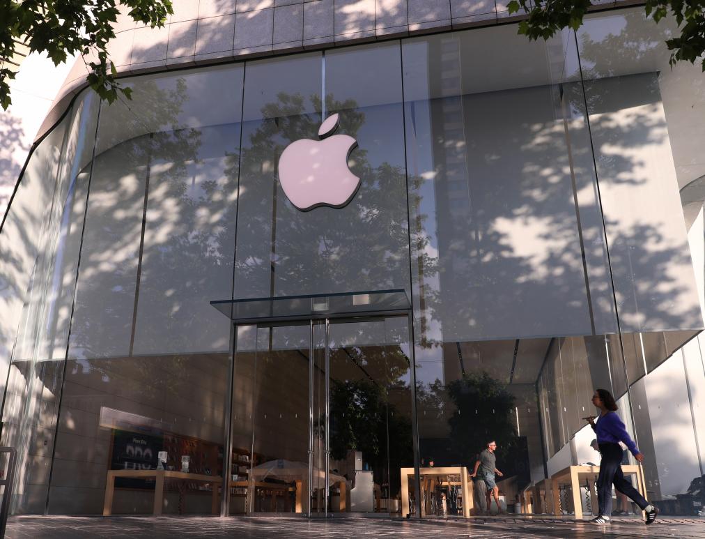 這是5月23日在比利時(shí)布魯塞爾拍攝的一家蘋(píng)果門(mén)店。新華社記者趙丁喆攝