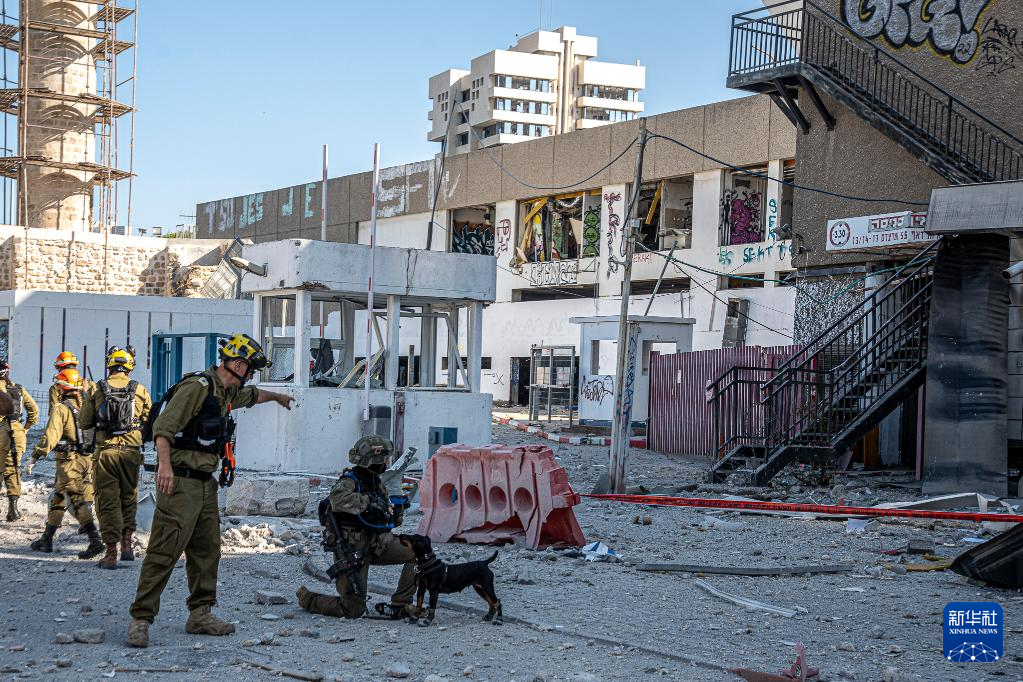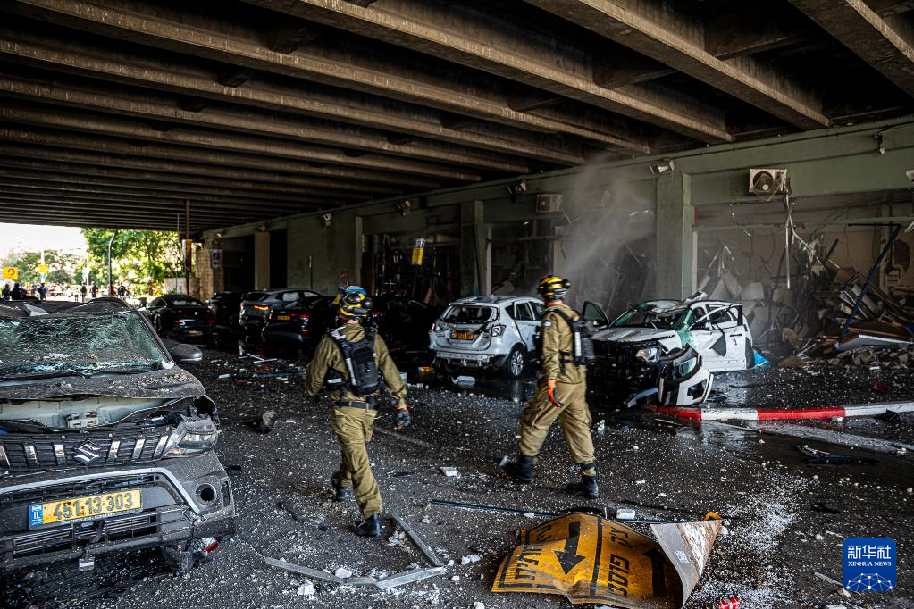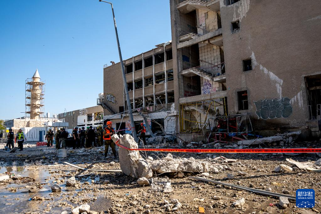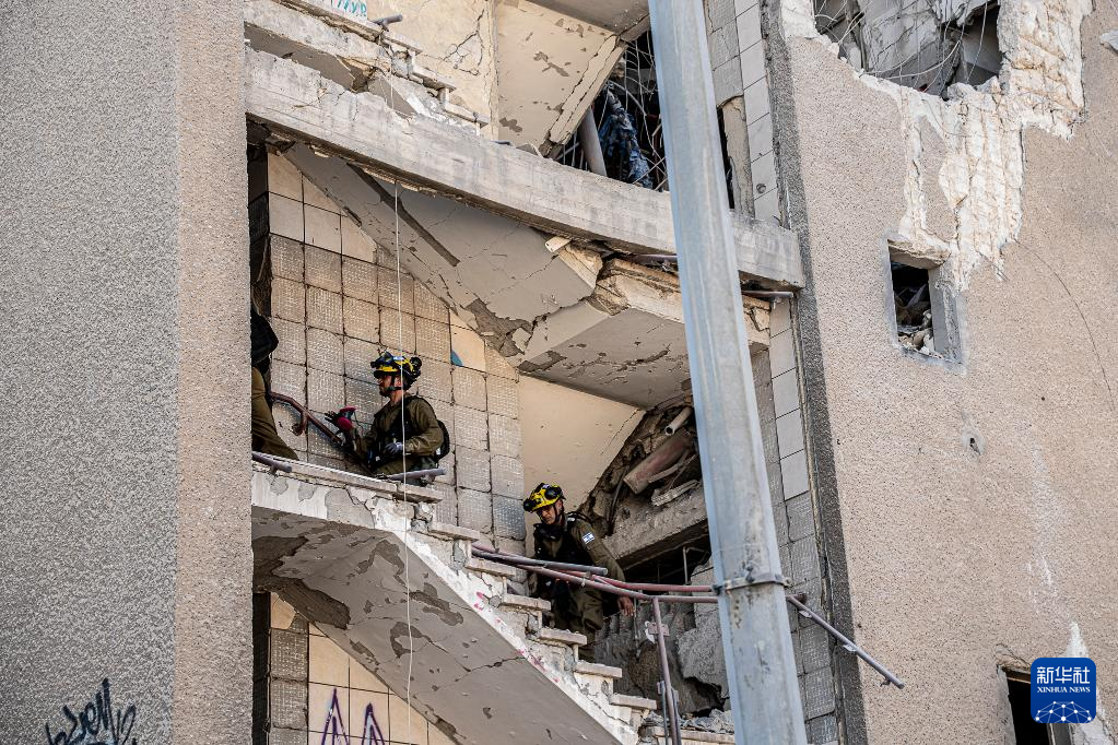 6月20日,安全和救援人員在以色列北部海法的導彈襲擊現(xiàn)場工作。新華社/基尼圖片社