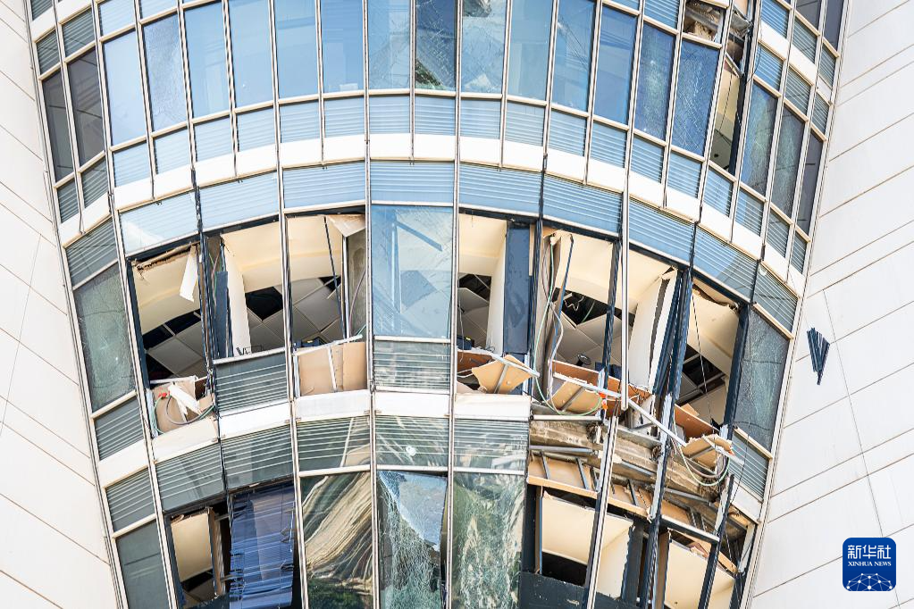 這是6月20日在以色列北部海法拍攝的在導彈襲擊中受損的建筑。新華社/基尼圖片社