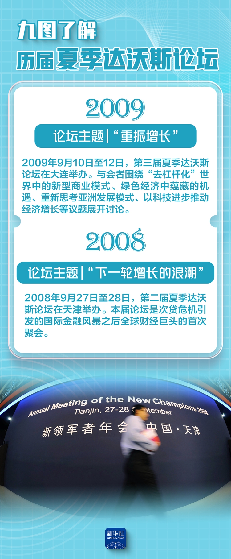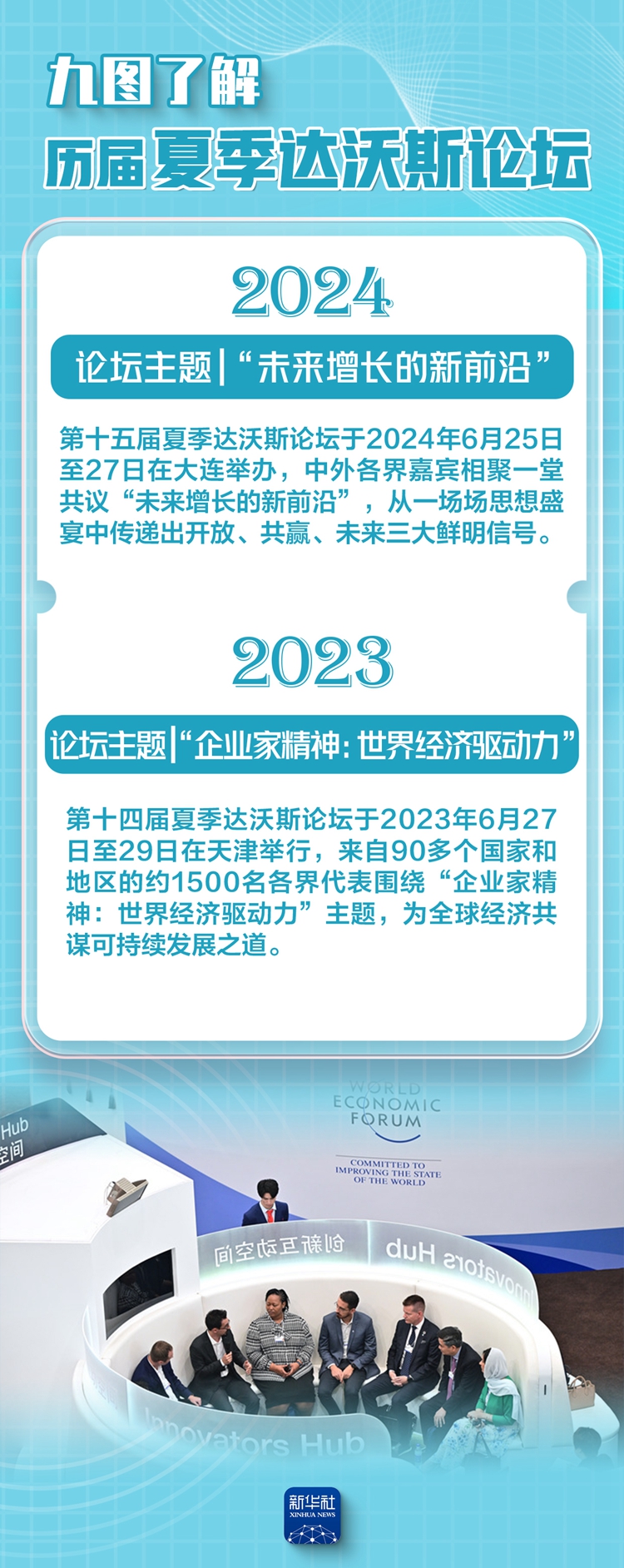 6月24日至26日,世界經濟論壇第十六屆新領軍者年會(夏季達沃斯論壇)將在天津拉開帷幕。這一被喻為“世界經濟風向標”的論壇,歷屆都關注哪些重點?今年的主題又是什么?讓我們跟隨九張海報,一起了解下。