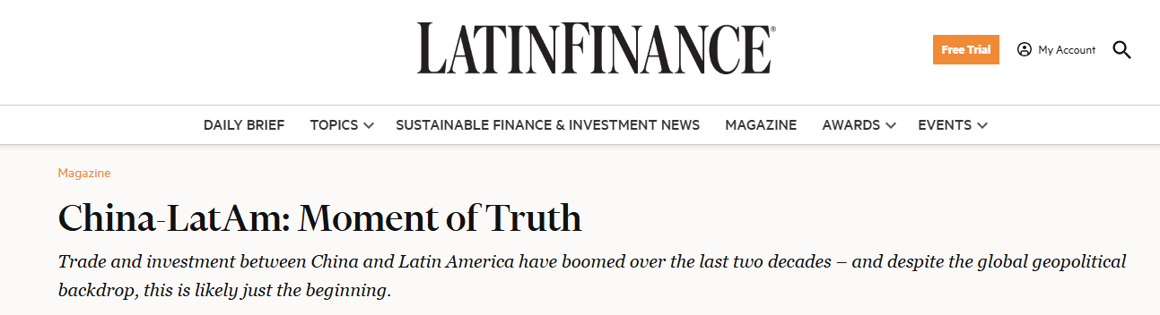 長期關(guān)注拉美及加勒比地區(qū)發(fā)展的《拉美金融》雜志最近的一篇文章,聚焦了過去二十年拉丁美洲與中國之間貿(mào)易和投資的蓬勃發(fā)展。文章指出,盡管當(dāng)前全球地緣政治形勢復(fù)雜,但拉美與中國這種良好的發(fā)展勢頭可能僅僅是雙方合作的開端。
