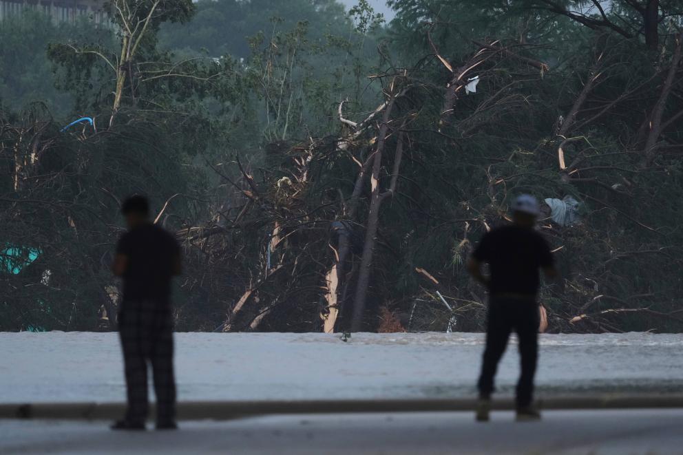 7月4日,在美國得克薩斯州英格勒姆市,人們在瓜達盧普河沿岸查看。新華社/美聯(lián)